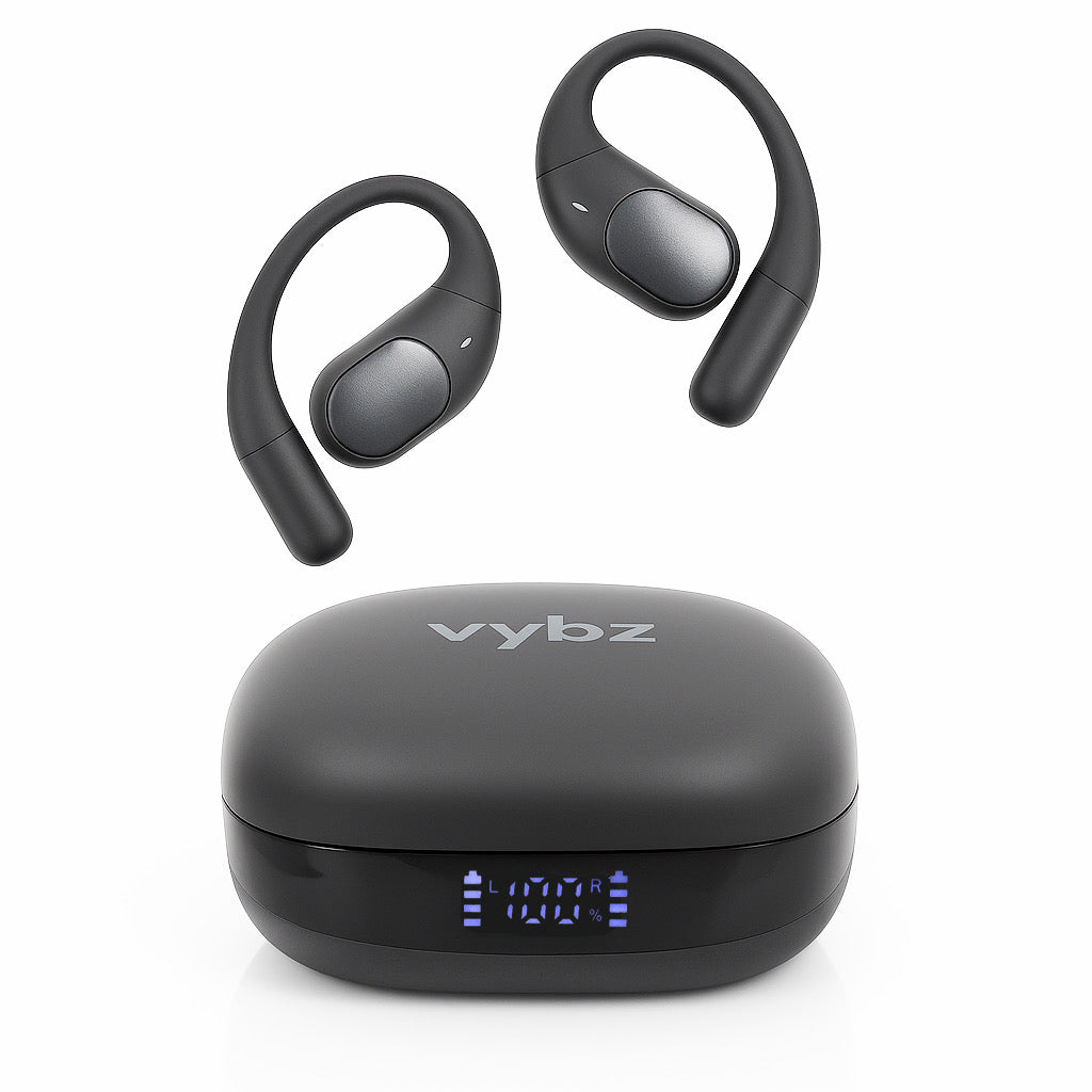 Experience the freedom of open-ear listening with the Vybz Open Ear Wireless Headphones. Designed for comfort, awareness, and exceptional sound clarity, these lightweight headphones let you enjoy your music, podcasts, or calls without blocking out the world around you.
