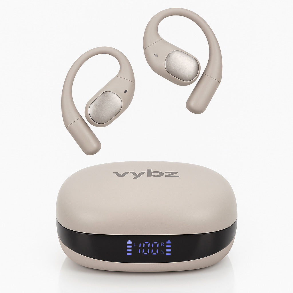Experience the freedom of open-ear listening with the Vybz Open Ear Wireless Headphones. Designed for comfort, awareness, and exceptional sound clarity, these lightweight headphones let you enjoy your music, podcasts, or calls without blocking out the world around you.