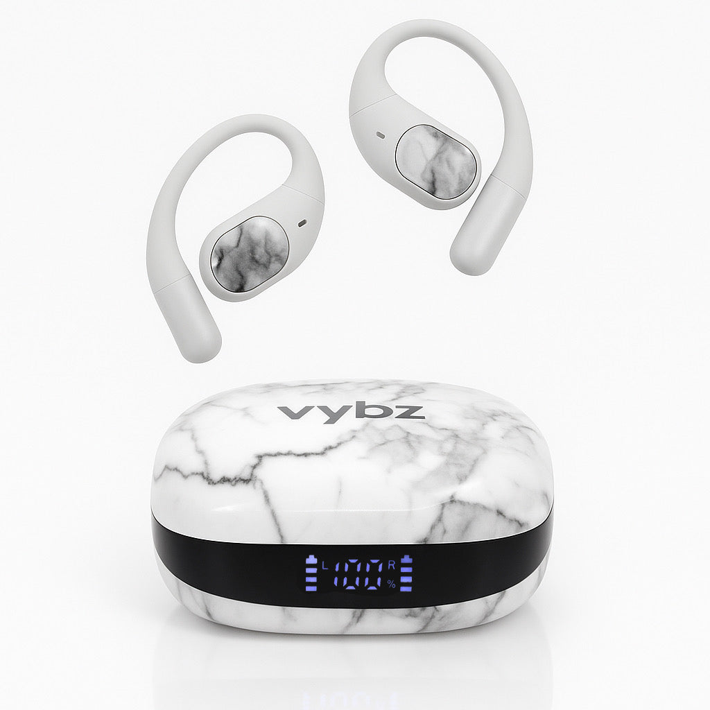 Experience the freedom of open-ear listening with the Vybz Open Ear Wireless Headphones. Designed for comfort, awareness, and exceptional sound clarity, these lightweight headphones let you enjoy your music, podcasts, or calls without blocking out the world around you.